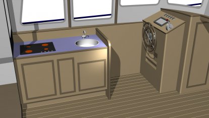 Ook later bij de afbouw van het casco kunnen schotten en/of overige interieur-onderdelen gebruikt worden, die vooraf uit het juiste materiaal gefreesd zijn. Complete modules kunnen vooraf naast de boot klaar gemaakt worden, waarna zij alleen nog geplaatst moeten worden. Bij zowel de voorbereiding als het frezen zelf, wordt gelet op tekening en richting van de nerf. Verder wordt ervoor gezorgd dat de onderdelen altijd uit dezelfde partij gefreesd worden.
