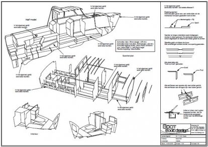 Gesneden onderdelen, gecodeerd, voorzien van markeerlijnen, ten behoeve van een juiste plaatsing van spanten e.d.